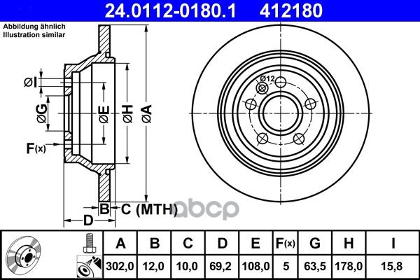 Диск торм. зад.[292x12] 5 отв. CHEVROLET Cruze 1,6-2,0 CDI 09->/Orlando 11->, OPEL Astra J 1,3-2,0/T/CDI/ecoFLEX 09->/Zafira Tourer 11->