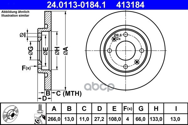 Торм.диск пер.[266x13] 4 отв. PEUGEOT Partner 6/96-9/02 CITROEN C3 2/02->, Berlingo 7/96-9/02