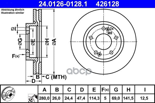 Торм.диск пер.вент.[280x26] 5 отв. HYUNDAI Tucson 2.0/D/4x4/2.7 8/04-> KIA Sportage 2.0/D/4WD/2.7 9/04->