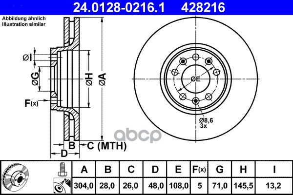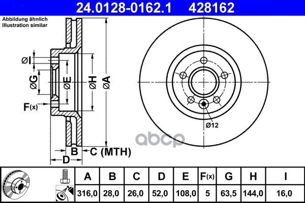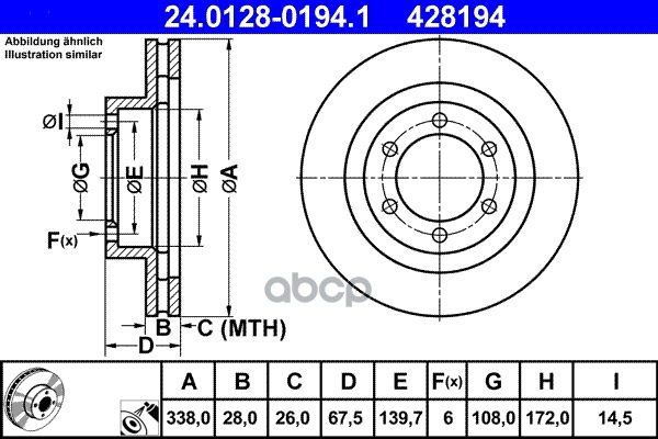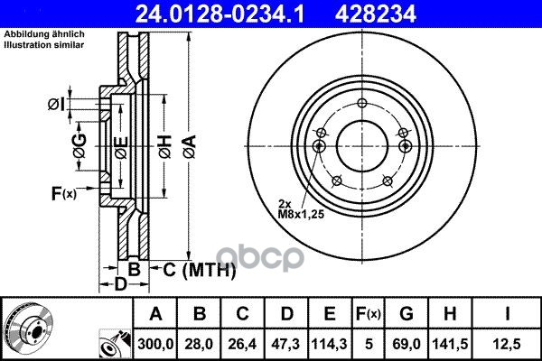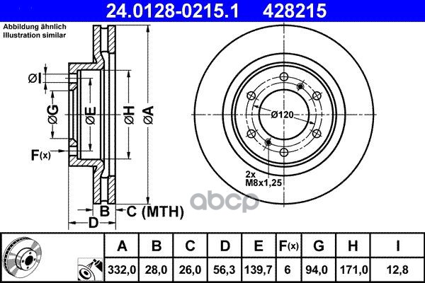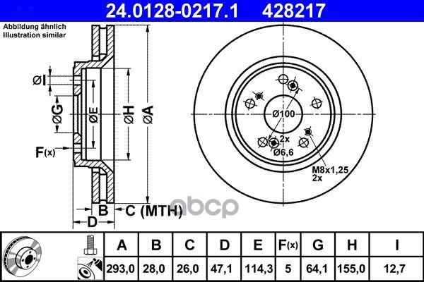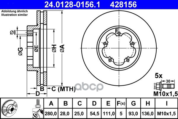 Диск тормозной передн, FORD: TRANSIT TOURNEO 2.2 TDCi 06-, TRANSIT c бортовой платформой 2.2 TDCi 06-, TRANSIT автобус 2.2 TDCi 06-, TRANSIT фургон 2.2 TDCi 06-