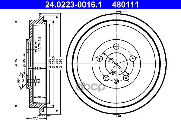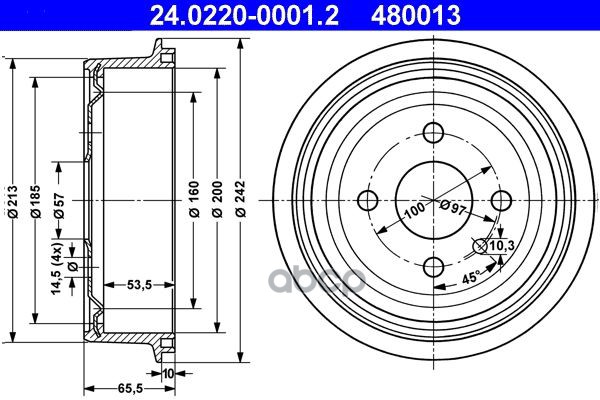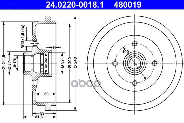Торм.барабан зад.[мин 2 шт.] 4-отв. VW Golf III/Passat/Polo, AUDI 80 05/72-12/86, SEAT Cordoba/Ibiza II/Toledo, SKODA Felicia I/II
