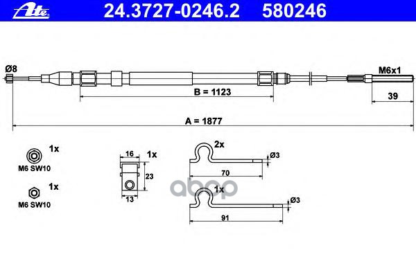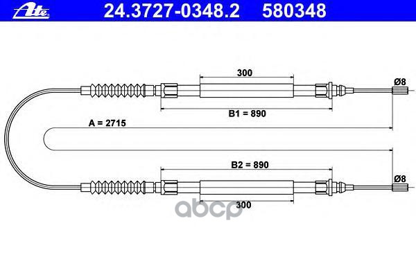 Трос ручного тормоза DAEWOO CIELO 1.5, 02.95-08.97, OPEL KADETT E 1.2-2.0, 09.84-08.91