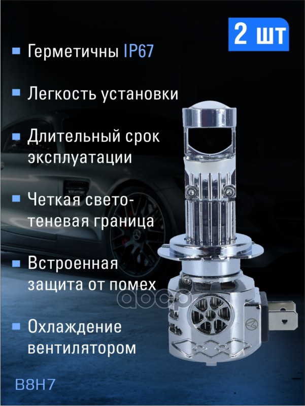 Наименование: Светодиодные лампы H7 (с вентилятором) (2шт)12V,40W/шт,4000LM,6000K,3570 чип