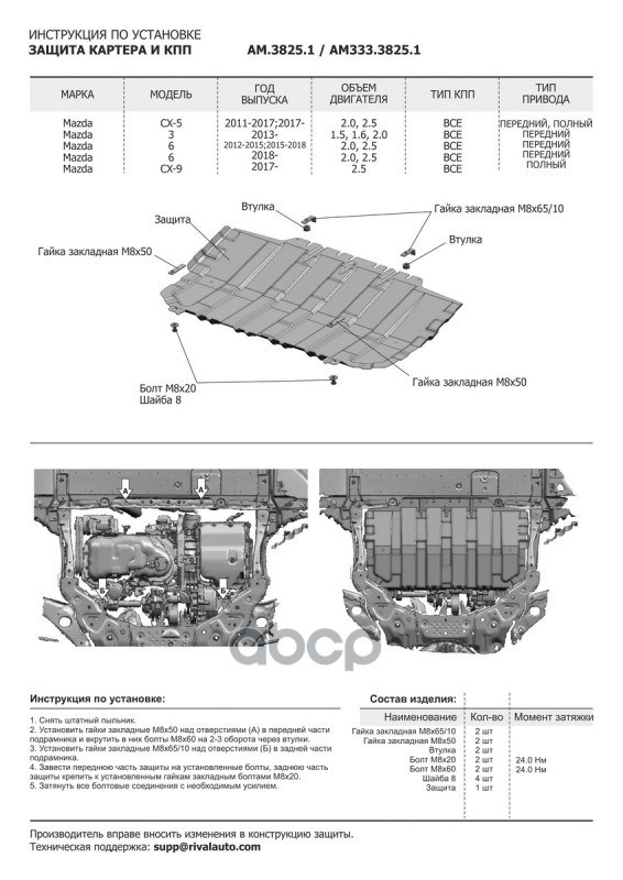 Купить запчасть AM38251 защита картера+КПП сталь 1.5 мм Mazda 3 BM 1.5, 1.6 12-18 с доставкой по России.