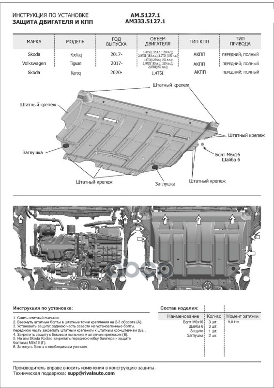 Купить запчасть AM51271 ЗК и КПП сталь 1.5мм Skoda Karoq 1.4 20>/Kodiaq 1.4 с доставкой по России.