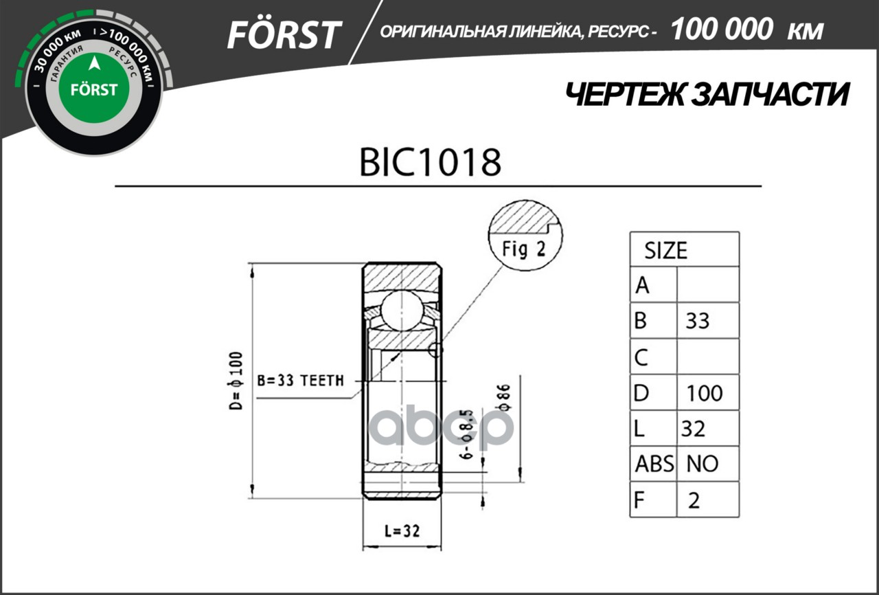 Наименование: Шрус VW Transporter (67-) (внутр.) [33] (BIC1018) B-RING FORST