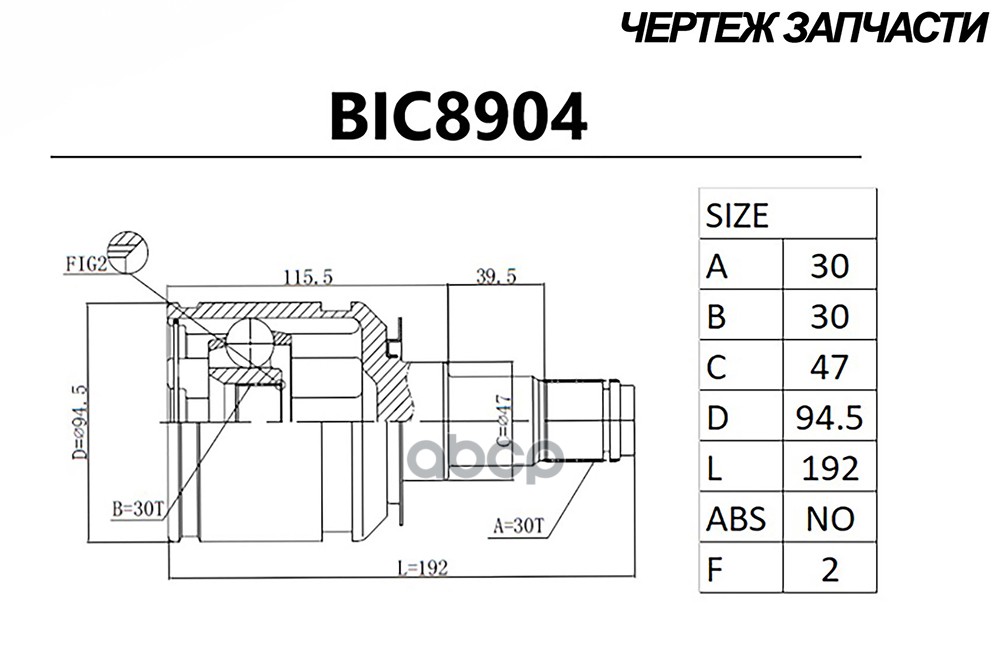 Наименование: Шрус TOYOTA Land Cruiser Prado (02-) (внутр.) [30/30] (BIC8904) B-RING FORST