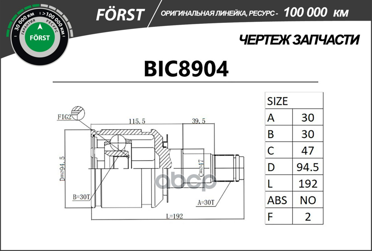 Шрус TOYOTA Land Cruiser Prado (02-) (внутр.) [30/30] (BIC8904) B-RING FORST