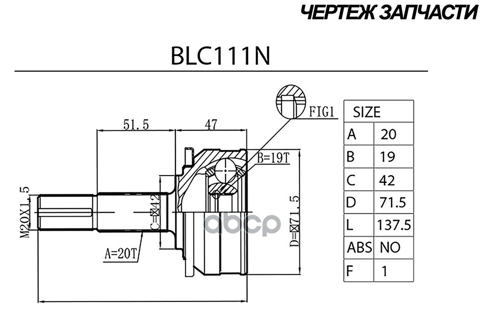 Наименование: Шрус LADA 1111-1113 (наруж.) [20/19] (BLC111N) B-RING FORST