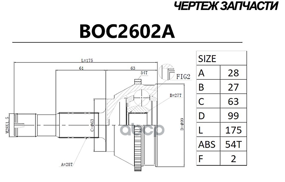 Купить запчасть BOC2602A Шрус CITROEN Jumper (06-), FIAT Ducato (06-) (наруж.) [с ABS, 28/27] (BOC2602A) с доставкой в Эль-Монте.