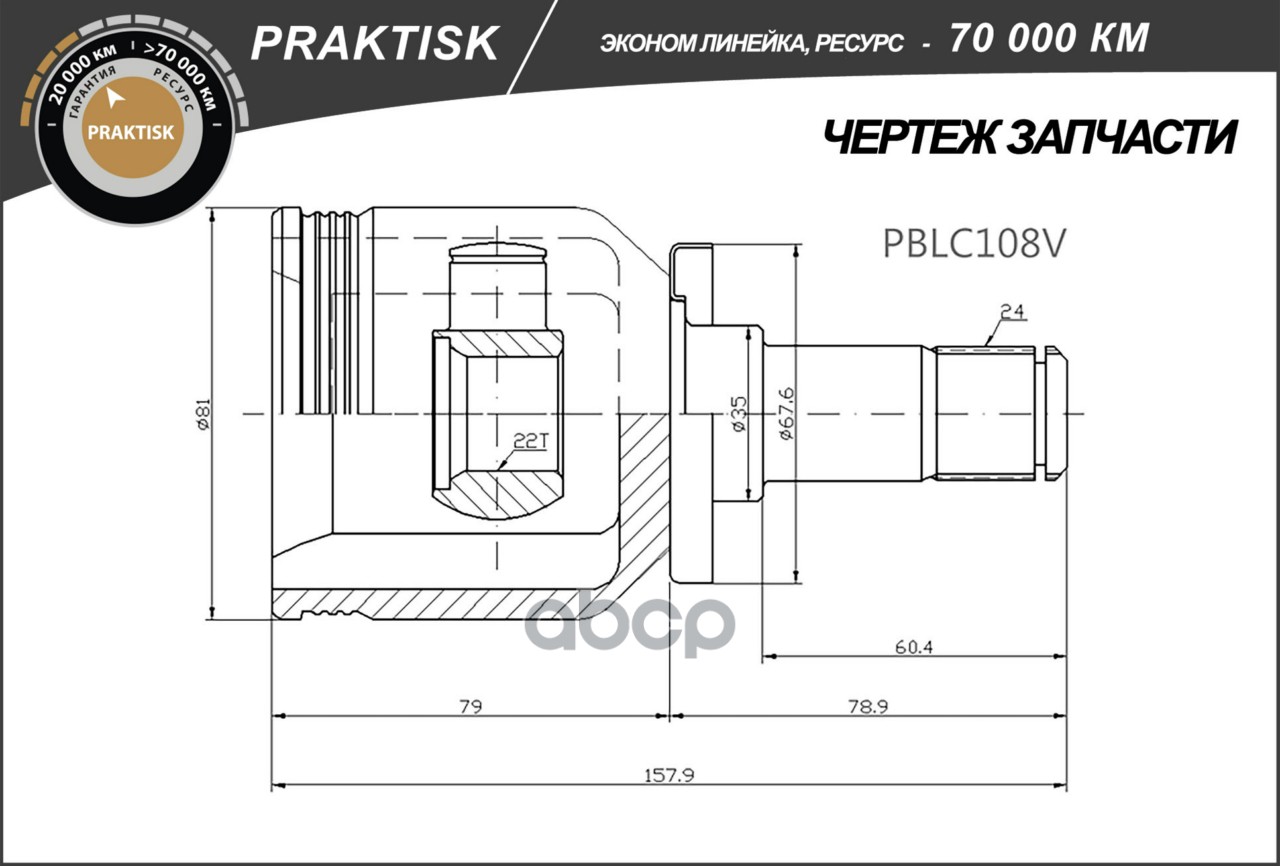 Наименование: Шрус LADA 2108-2115, 2110-2012 (внутр.) [24/22] (PBLC108V) B-RING PRAKTISK