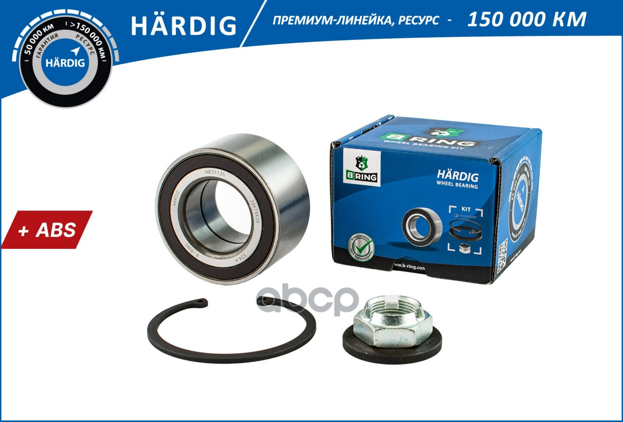 Подшипник ступицы FORD Transit Connect (02-) (перед. компл.) [39x74x39 с ABS] (HBK1465) B-RING HARDIG