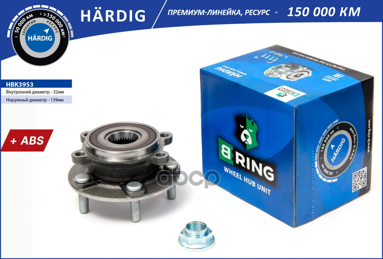 Ступица с подшип. в сборе MAZDA CX-5 (11-), 6 III GJ (12-) (перед.) [d=139 с ABS] (HBK3953) B-RING HARDIG