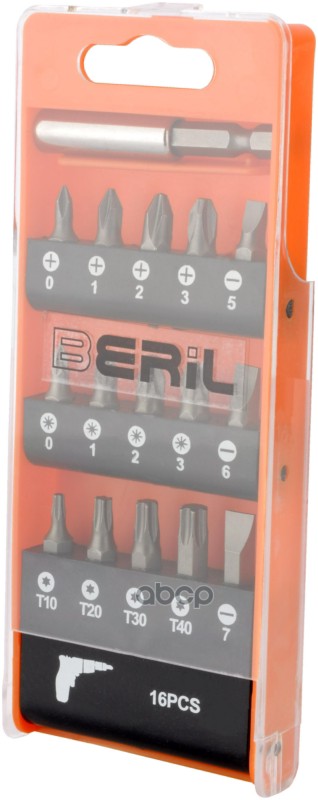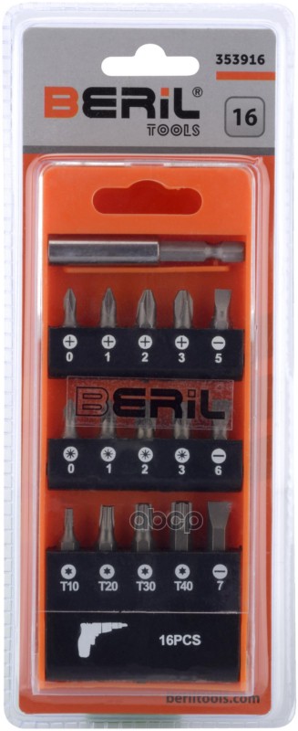 Бренд: BERiL TOOLS, артикул: 353916, Набор бит с адаптером 16 пр. Hex Torx крест L=20 мм BERIL 353916. |