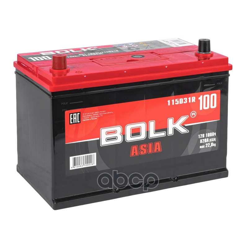 Наименование: АККУМУЛЯТОР BOLK 100 AЧ 353Х175Х190 EN 850 BOLK B