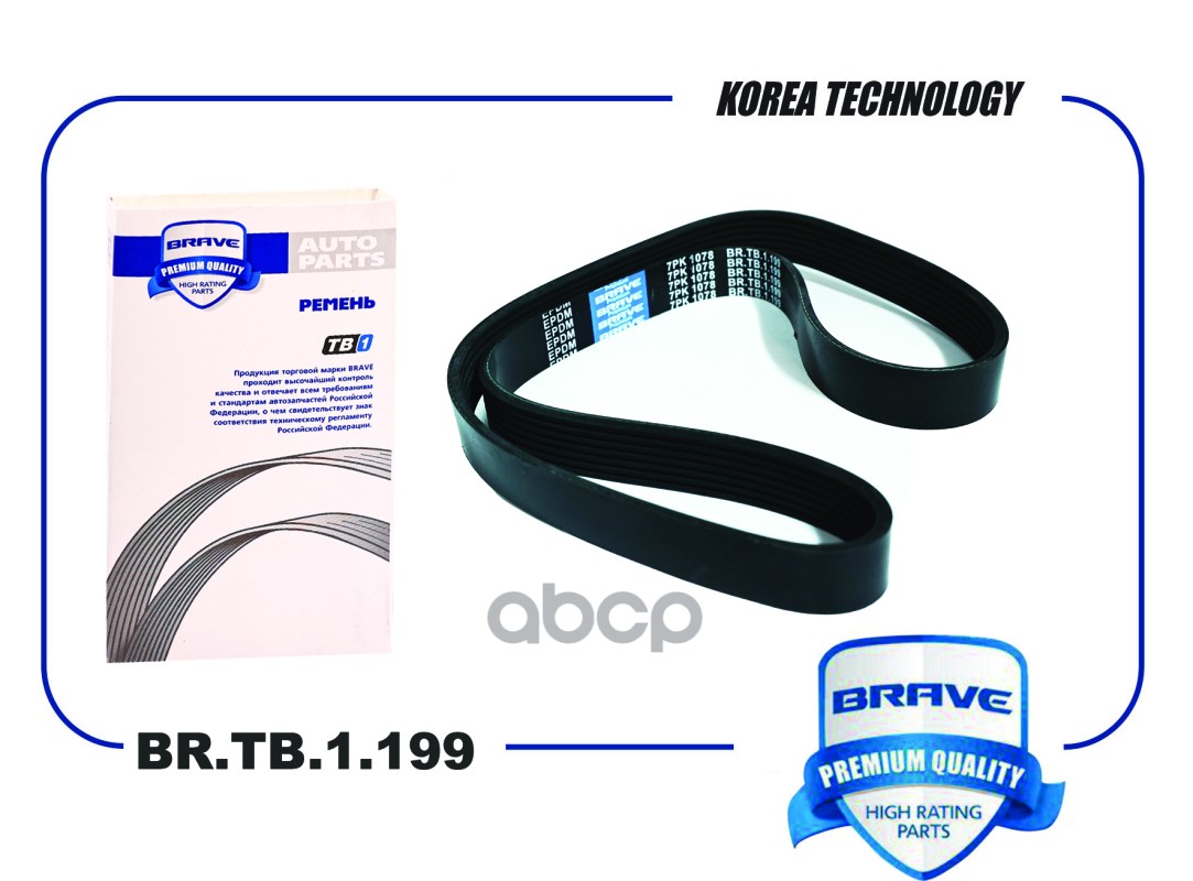 Ремень поликлиновой 7PK1078 Brave EPDM Fiat Ducato III 2.3JTD 02, Nissan Note 1.2 13- BR.TB.1.199 500388408;7PK1078;0711076SX;7PK1076;