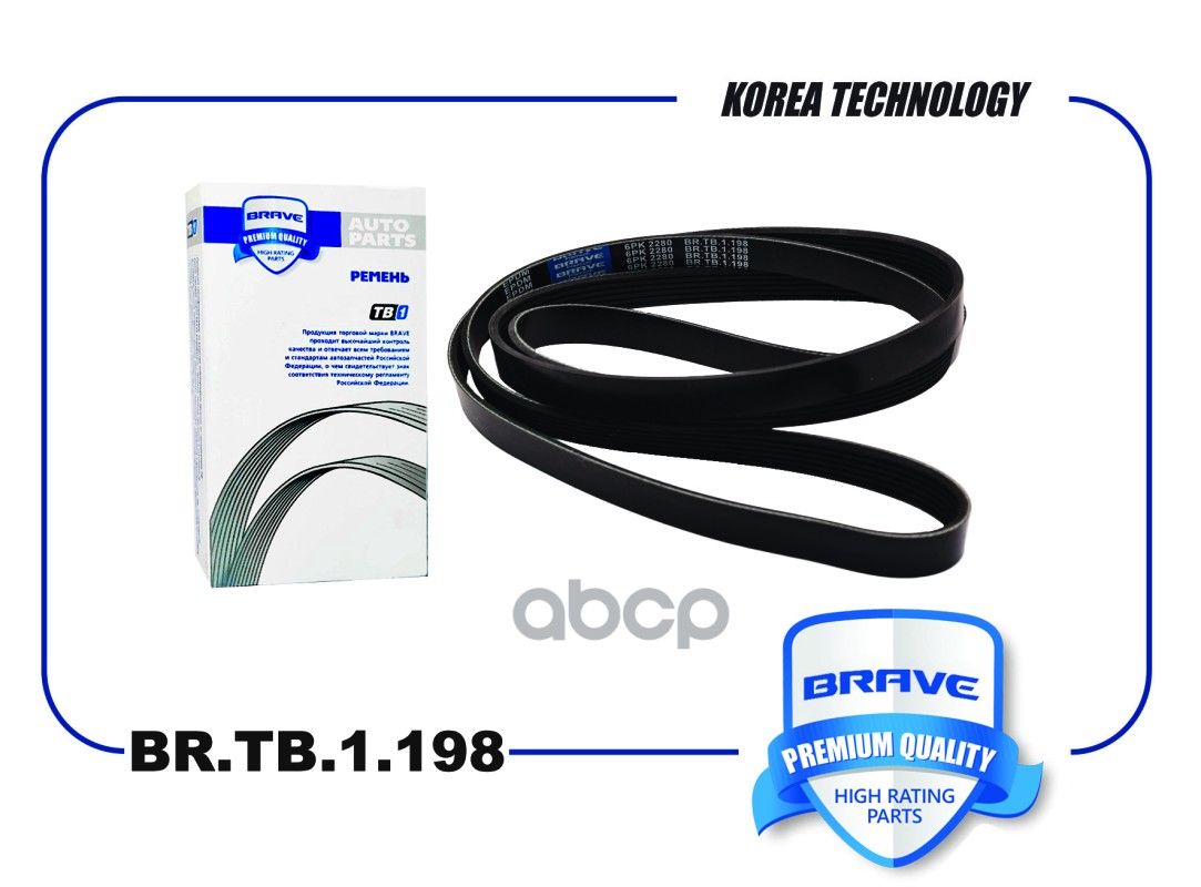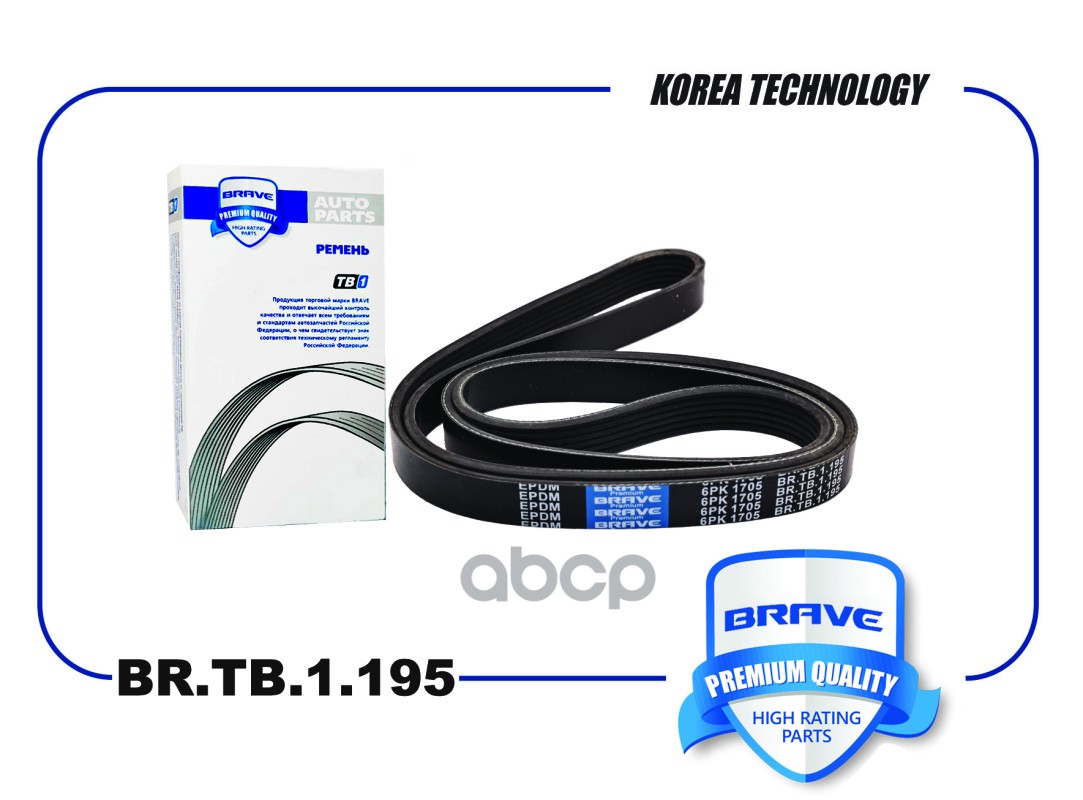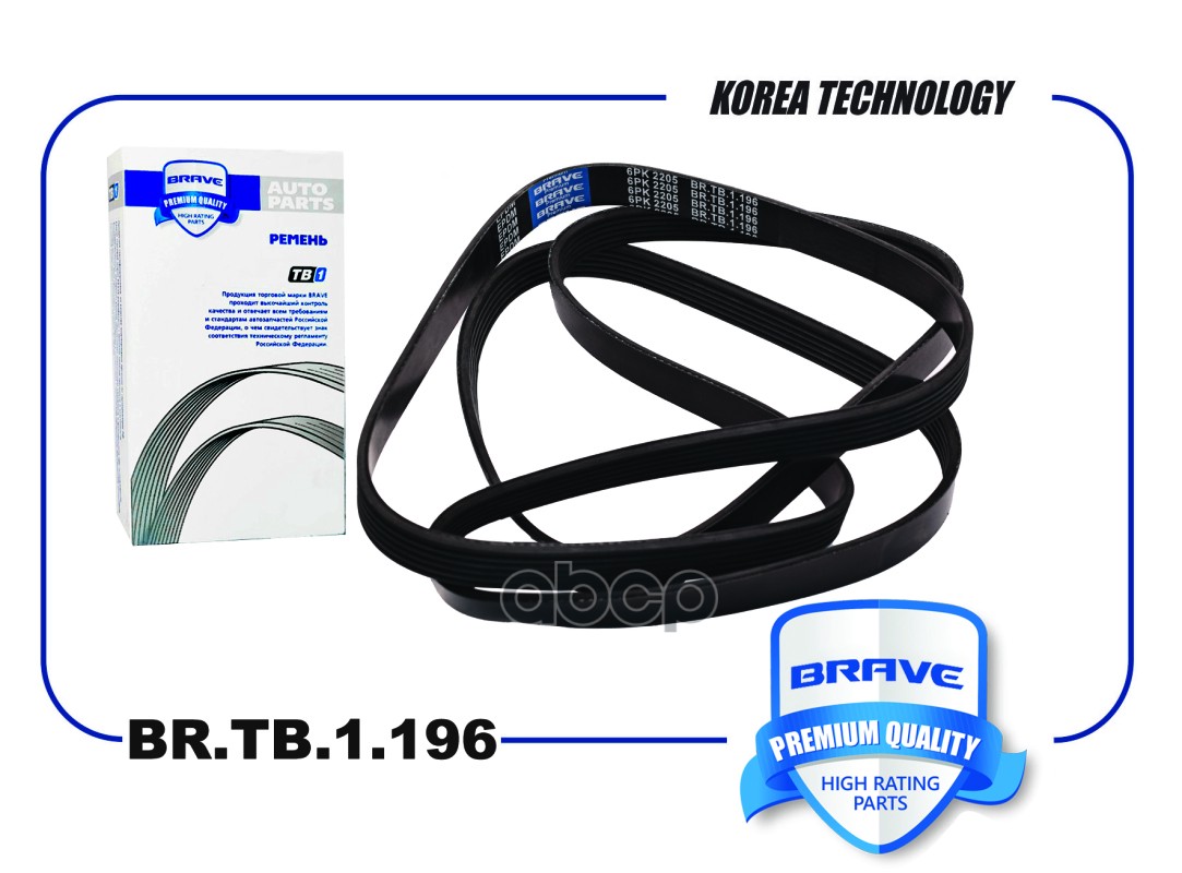 Ремень поликлиновой 6PK2205 Brave EPDM MB Sprinter 214-414 2.3 96>, VITO, VW T4 2.5TDi 95 BR.TB.1.196 88968200001;119975592;119972192;A0129970992;A0119972192;A0119975592;89978792;A0089978792;129970992;6C1Q6C301FA;6PK2200ES;6PK2203;6PK2205;6K2205;6K2205;6P