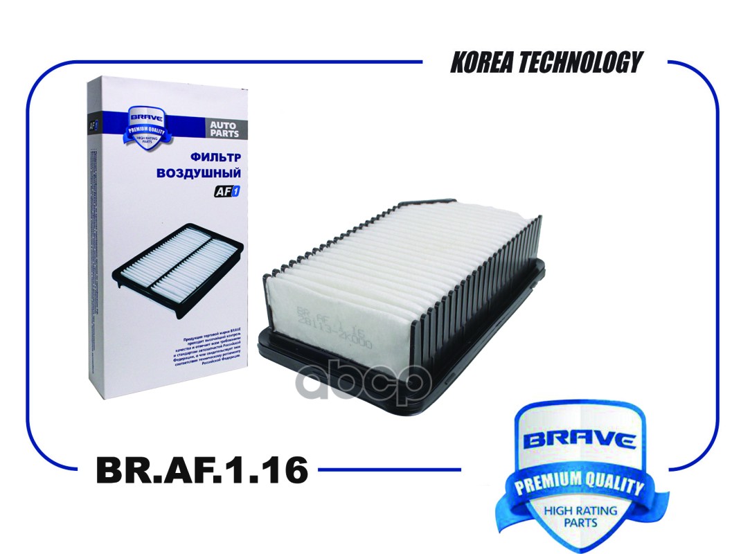 Фильтр воздушный Hyundai i20 08-15; Kia Soul (AM) 09-13, Venga (YN) 10- Brave BR.AF.1.16 A63475;132707;MD8436;HA710;KA1591;AMDFA55;AMDFA232;200KK22;03962350;Y01720;ADG02293;ADG02294;BFA2244;F026400137;CAF100879P;U879606;MA3118;EAF748;PA7660;A141072;A14125