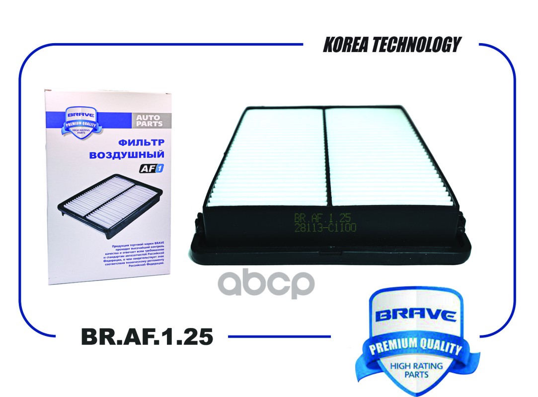 Фильтр воздушный BR.AF.1.25 28113-C1100 Sonata VII 2.0/2.4 14-, Optima JF 2.0/2.4 150 л.с. 15- BR.AF.1.25