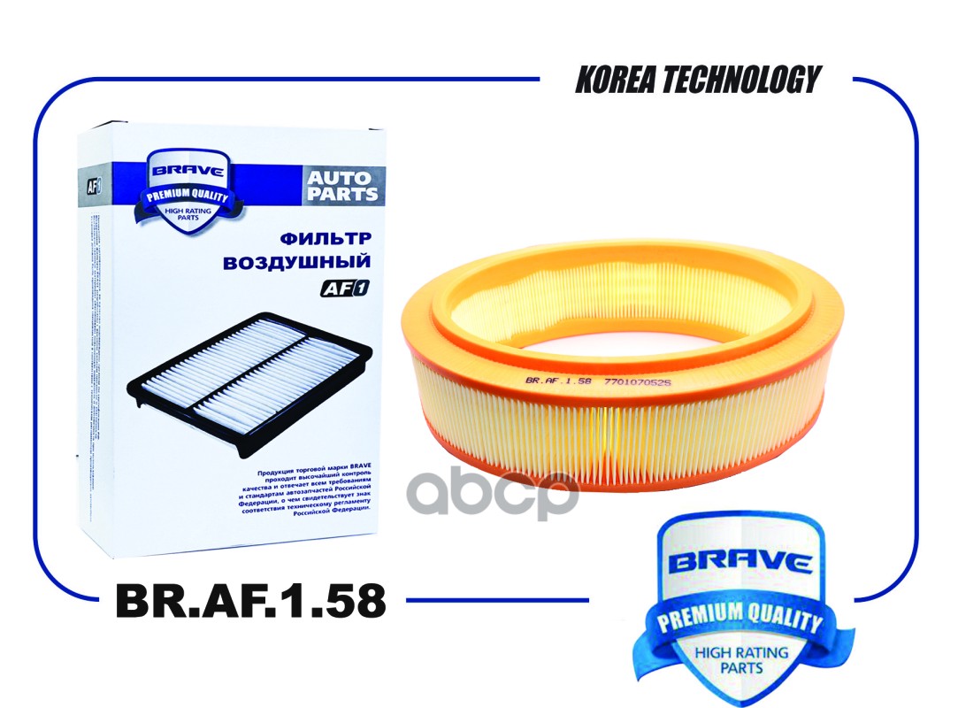 Фильтр воздушный Renault Logan 8V 04-12, Sandero 8V 07-12, Kangoo 97-07 Brave BR.AF.1.58 LX26721;A0248;MD8076;AMDFA777;AMDSETF124;AMDSETF124A;2001001;30518;30694;2000041;AT7655200AF;A43248;GB9113;FA3170;1457433311;EAF411;A140625;30071;FAI101;FAI107;AR1311