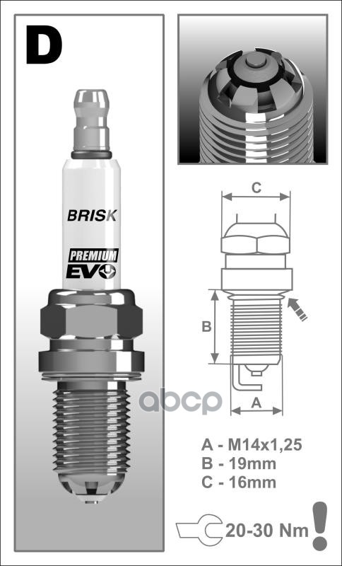 Свеча DR15BSXC (1923) AUDI, MAZDA, NISSAN, OPEL, RENAULT, ключ 16, (PREMIUM EVO). DR15BSXC "Brisk" .