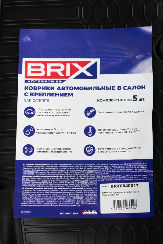 Бренд: BRIX, артикул: BRX0040017, коврики в салон (полиуретан) с крепFord Mondeo 15>. |