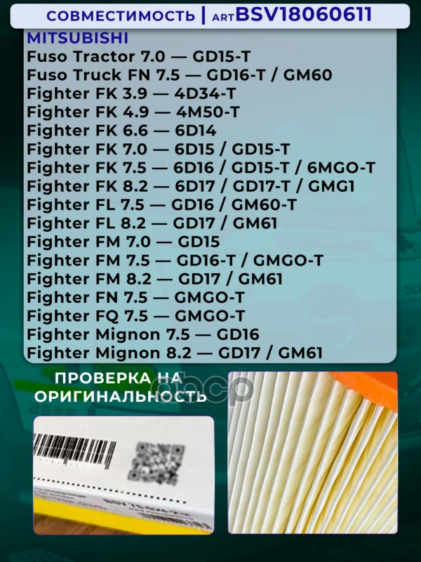 Купить запчасть BSV18060611 ФИЛЬТР ВОЗДУШНЫЙ MITSUBISHI FUSO TRUCK FN, FIGHTER с доставкой по России.