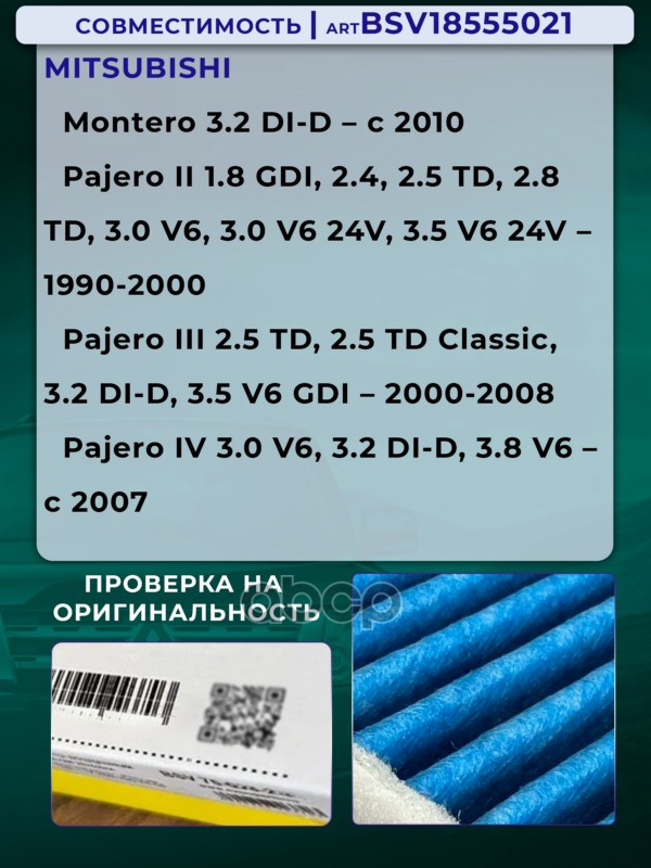 Купить запчасть BSV18555021 Фильтр салонный PRO увеличенный ресурс MITSUBISHI ASX с 10г.-Galant с 08г.-Lancer с03г.-Outland с доставкой в Эль-Монте.
