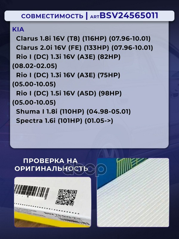 Бренд: BSV, артикул: BSV24565011, Фильтр салонный 2шт KIA ClarusRioSpectra с 96г.-. |