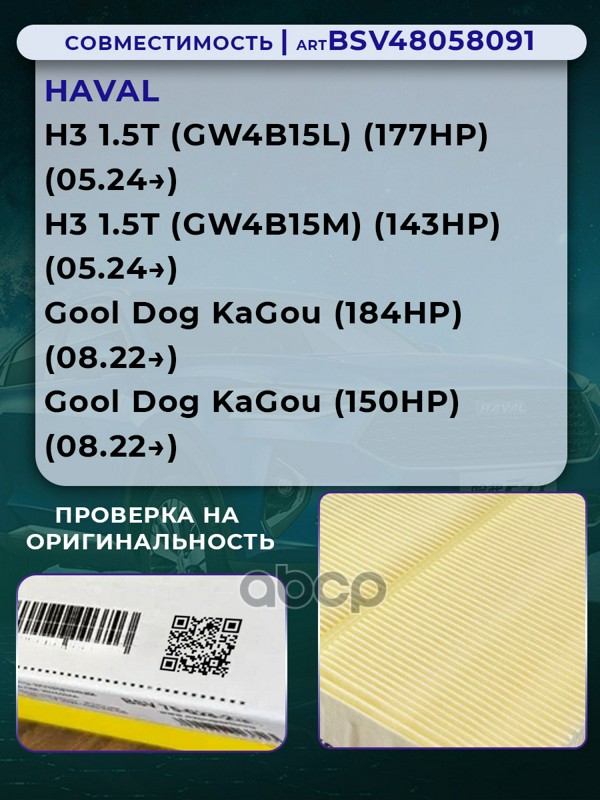Купить запчасть BSV48058091 Фильтр воздушный HAVAL H3 1.5 с 24г.- с доставкой в Эль-Монте.