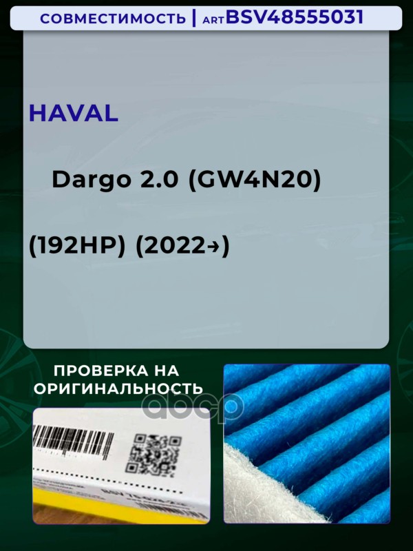 Купить запчасть BSV48555031 Фильтр салонный PRO увеличенный ресурс HAVAL Dargo 2.0 с 22г.- с доставкой по России.