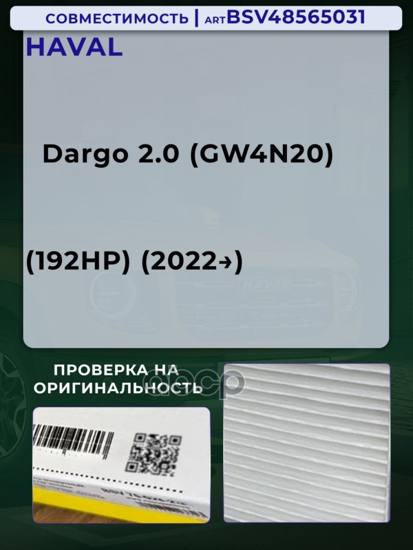 Купить запчасть BSV48565031 Фильтр салонный HAVAL Dargo 2.0 с 22г. с доставкой по России.