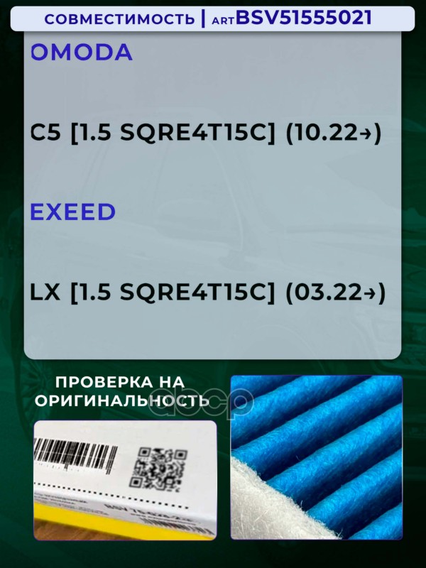 Купить запчасть BSV51555021 ИЛЬТР САЛОННЫЙ PRO УВЕЛИЧЕННЫЙ РЕСУРС CHERY TIGG с доставкой по России.
