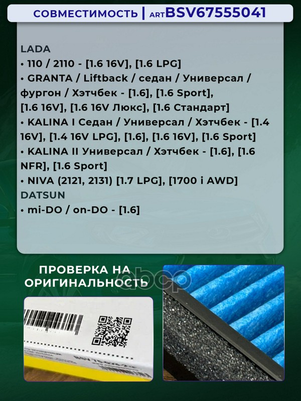 Купить запчасть BSV67555041 ФИЛЬТР САЛОННЫИ PRO УВЕЛИЧЕННЫИ РЕСУРС ПЛАСТИКО с доставкой в Эль-Монте.