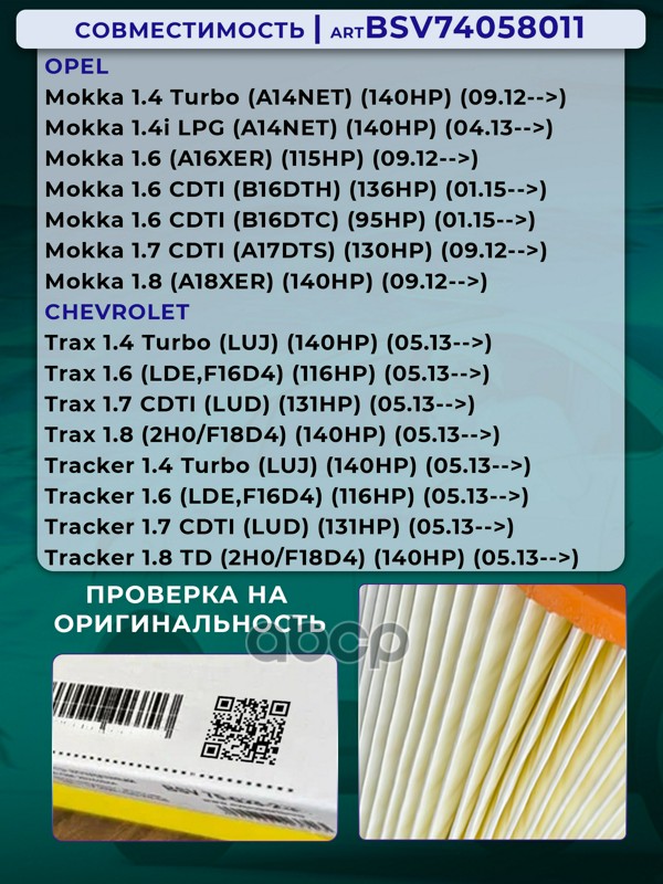 Купить запчасть BSV74058011 Фильтр воздушный OPEL Мокка 1.4, 1.6, 1.7 CDTI с20 с доставкой по России.