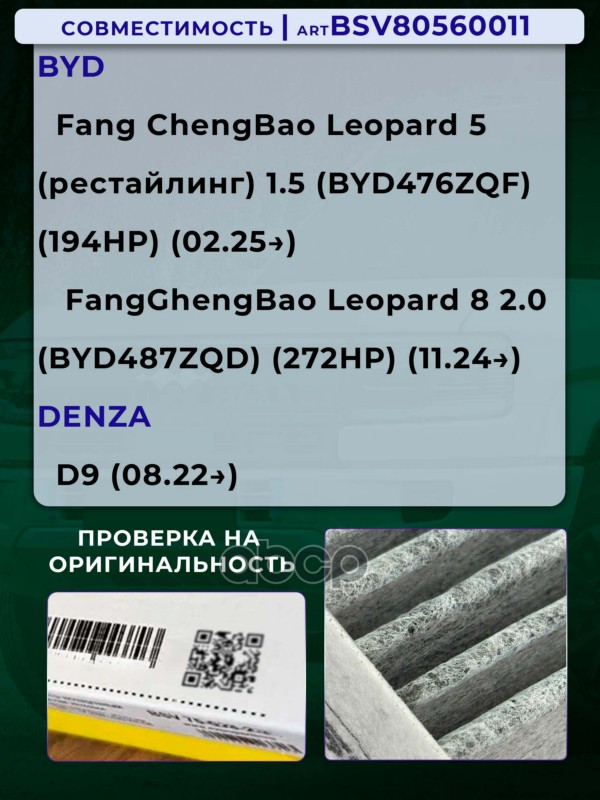 Купить запчасть BSV80560011 Фильтр салонный уголь 2шт. BYD Leopard 5 1.5 с 25г.-Leopard 8 2.0 с 24г.-DENZA D9 с 22г.- с доставкой по России.