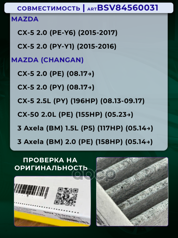Купить запчасть BSV84560031 Фильтр салонный PRO увеличенный ресурс MAZDA CX- с доставкой по России.