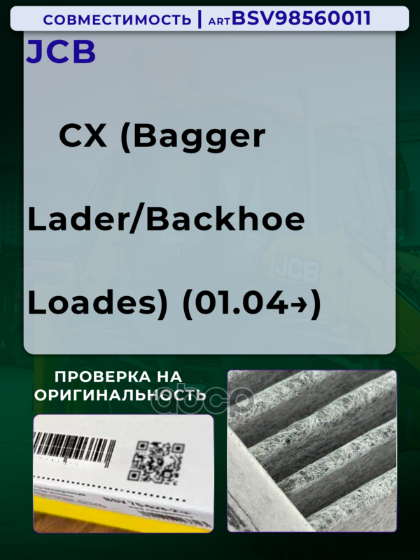Купить запчасть BSV98560011 Фильтр салонный уголь СХ техника JCB J.C. Bamford Трактор с доставкой по России.
