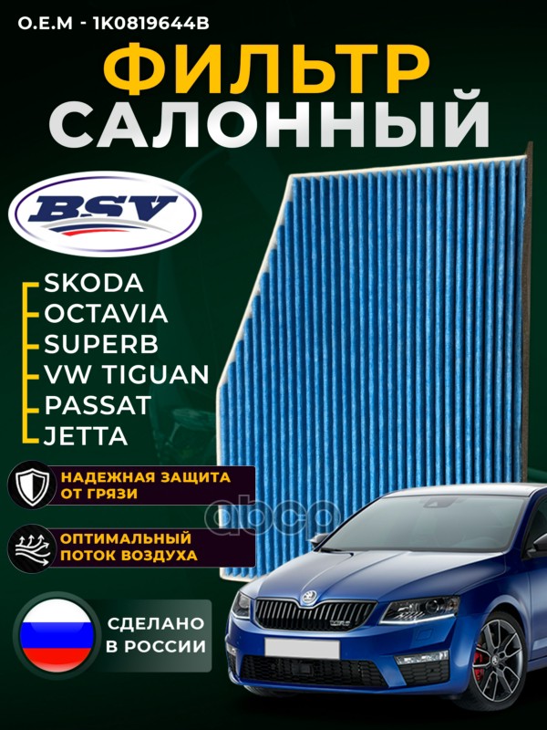 Фильтр салонный PRO увеличенный ресурс Skoda Octavia с 04г.-Yeti с 09г.-VW Golf с 03г.-Passat с