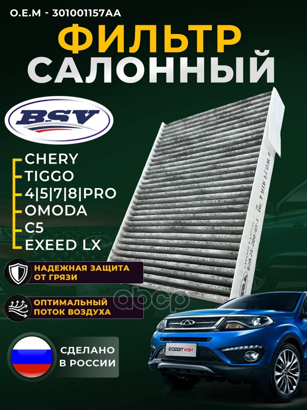 Фильтр салонный уголь CHERY Tiggo 4 с 17г.-Tiggo 7 с 19г.-Tiggo 8 с 20г.-OMODA C5 с 22г.-EXEED