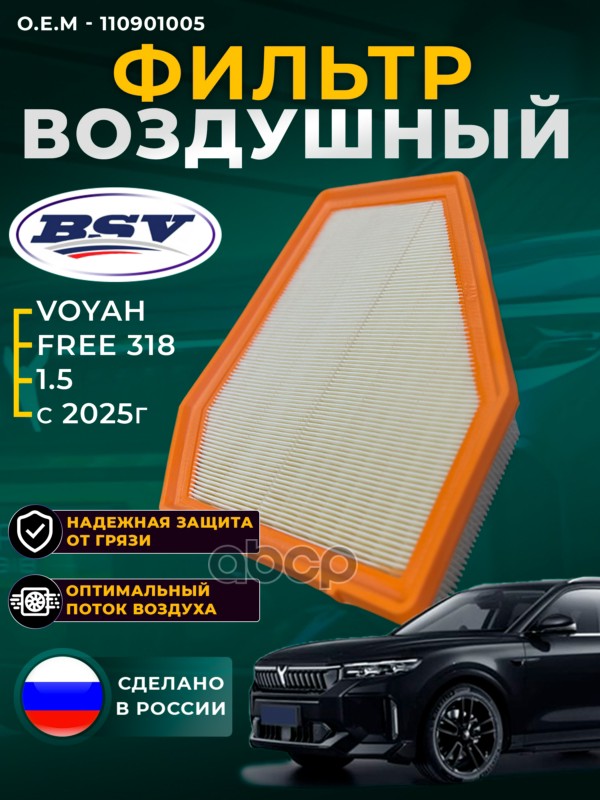 Фильтр воздушный BSV A00067644 BEIJING U5 PLUS, BAIC U5 PLUS A151A1 A00067644, A373P00985, BSV30058011, DFA26100, JDAX016, AF0413, C26100, TR55779, MA5051, LF1779