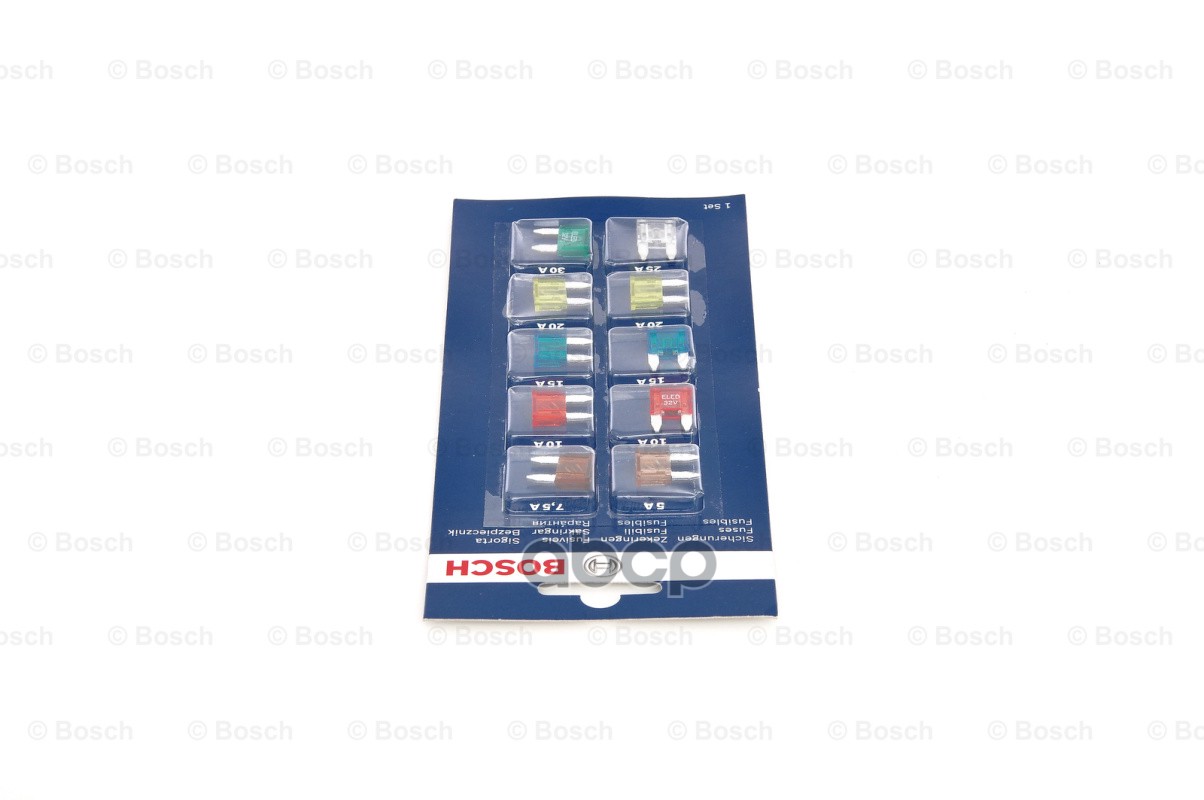 Бренд: Bosch, артикул: 1987529038, предохранитель плоские, набор 10 шт. mini 1 шт.х5/7.5/25/30А, 2 шт.х10/15/20А. |