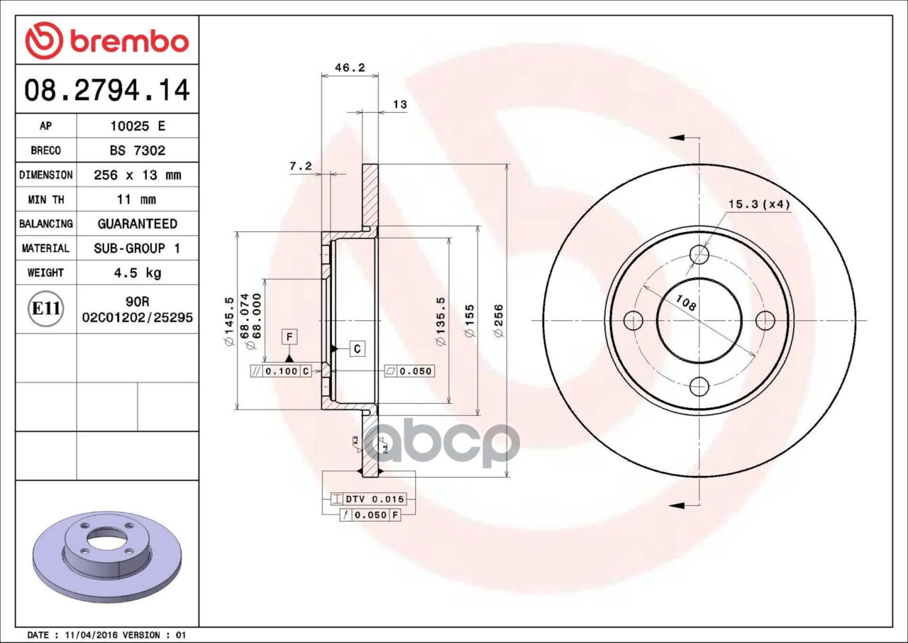 Наименование: Диск тормозной передний