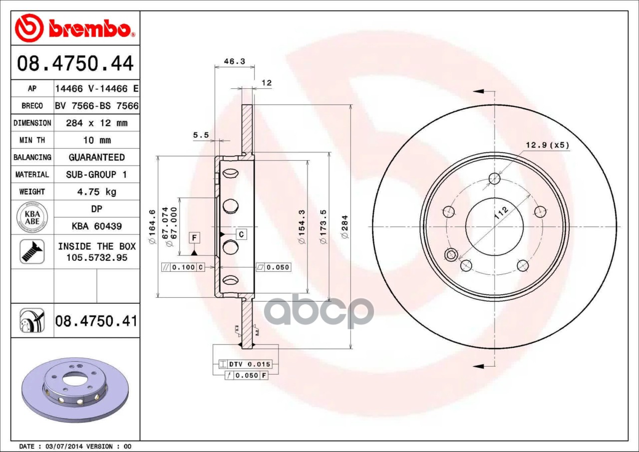 Наименование: 08.4750.41 диск тормозной передний с покрытием MB W202 1.8/2.0D-2.5D 93>