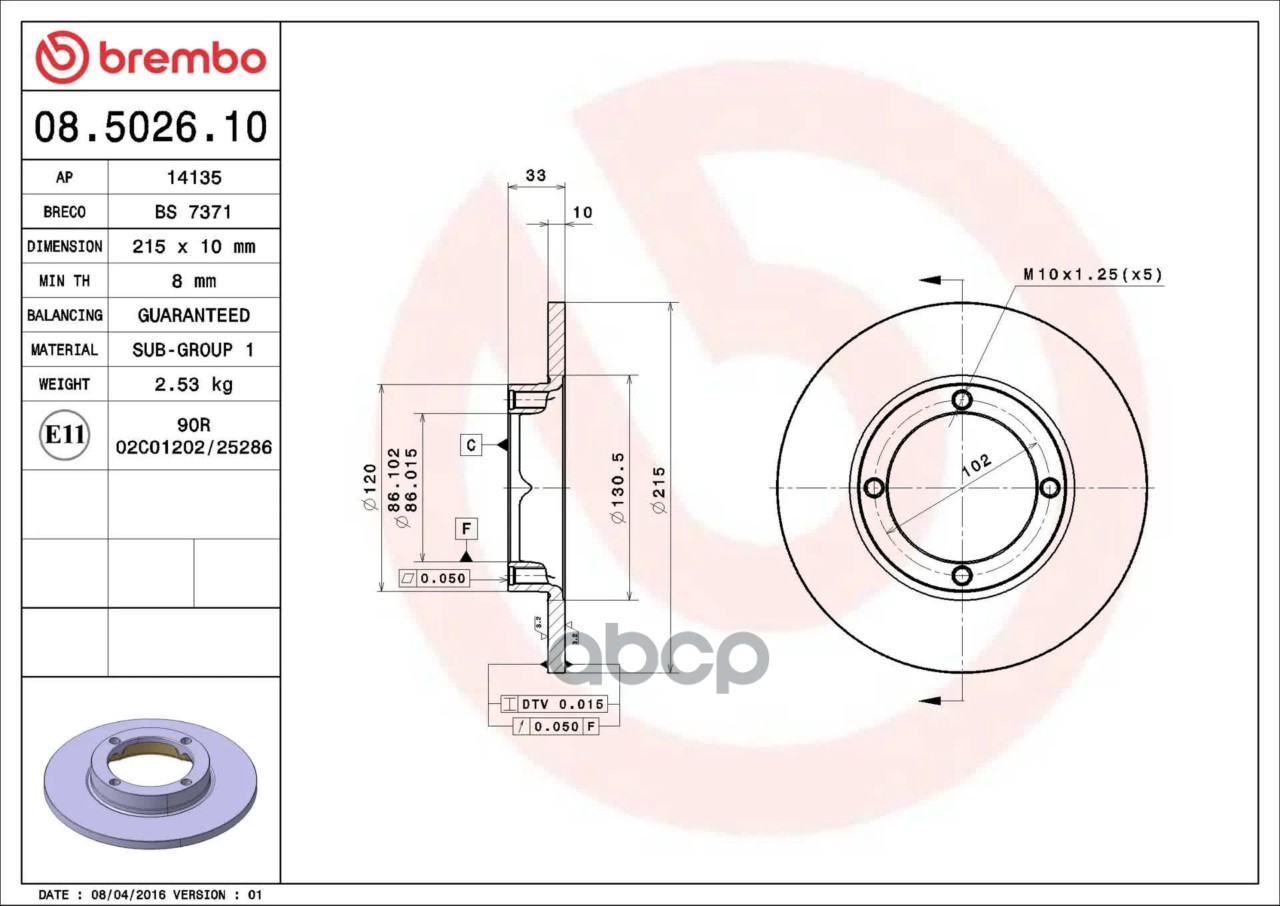Купить запчасть 08502610 Тормозной диск с доставкой по России.