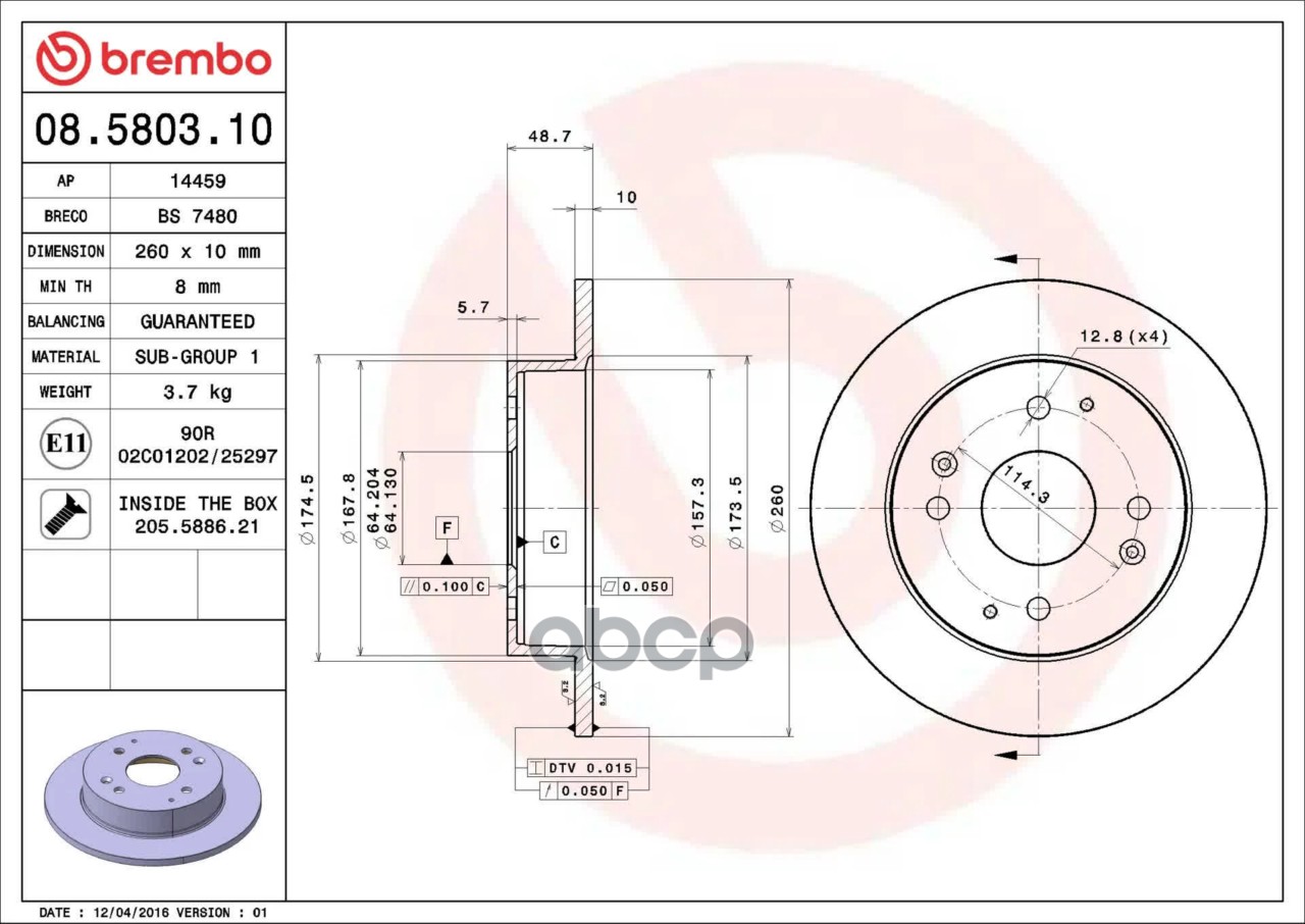 Купить запчасть 08580310 Торм. диск зад. (260x10) 4 отв. с доставкой по России.