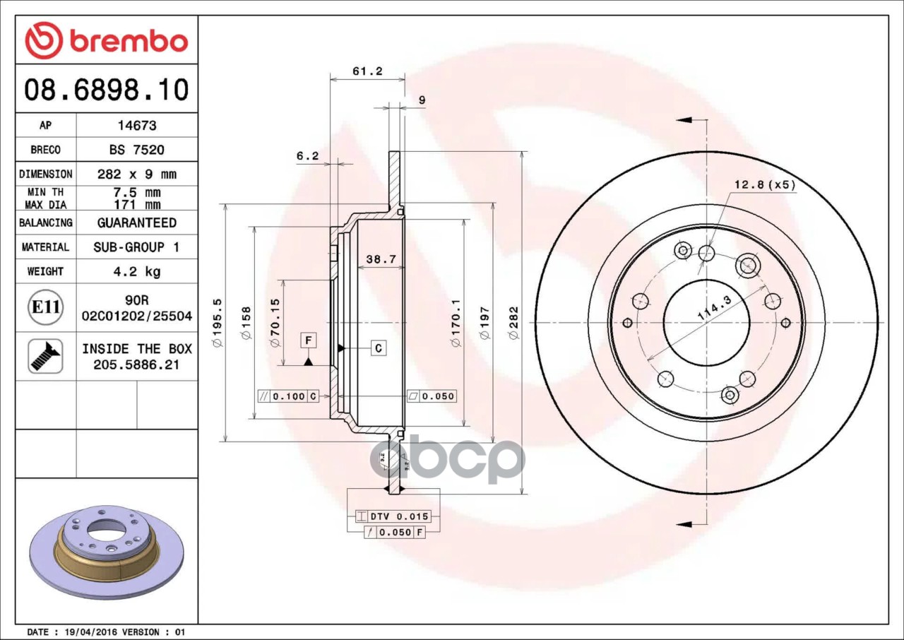 Наименование: 08.6898.10 диск тормозной задний Honda Legend 3.2 24V 91-96/Shuttle 2.2/2.3 94-01