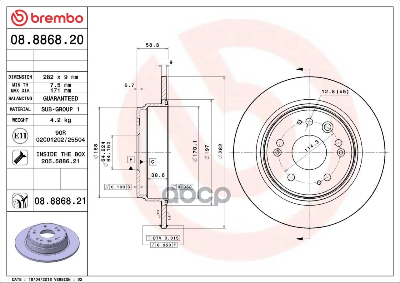 Купить запчасть 08886820 Диск торм. зад.вент.[282x9] 5 отв. HONDA CR-V 2.0 02-06 с доставкой по России.