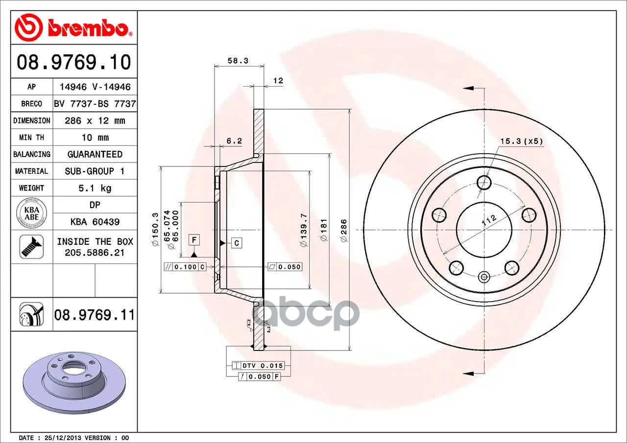Наименование: 08.9769.11 диск тормозной задний Audi TT 1.8-2.0TFSi/2.0TDi 06>
