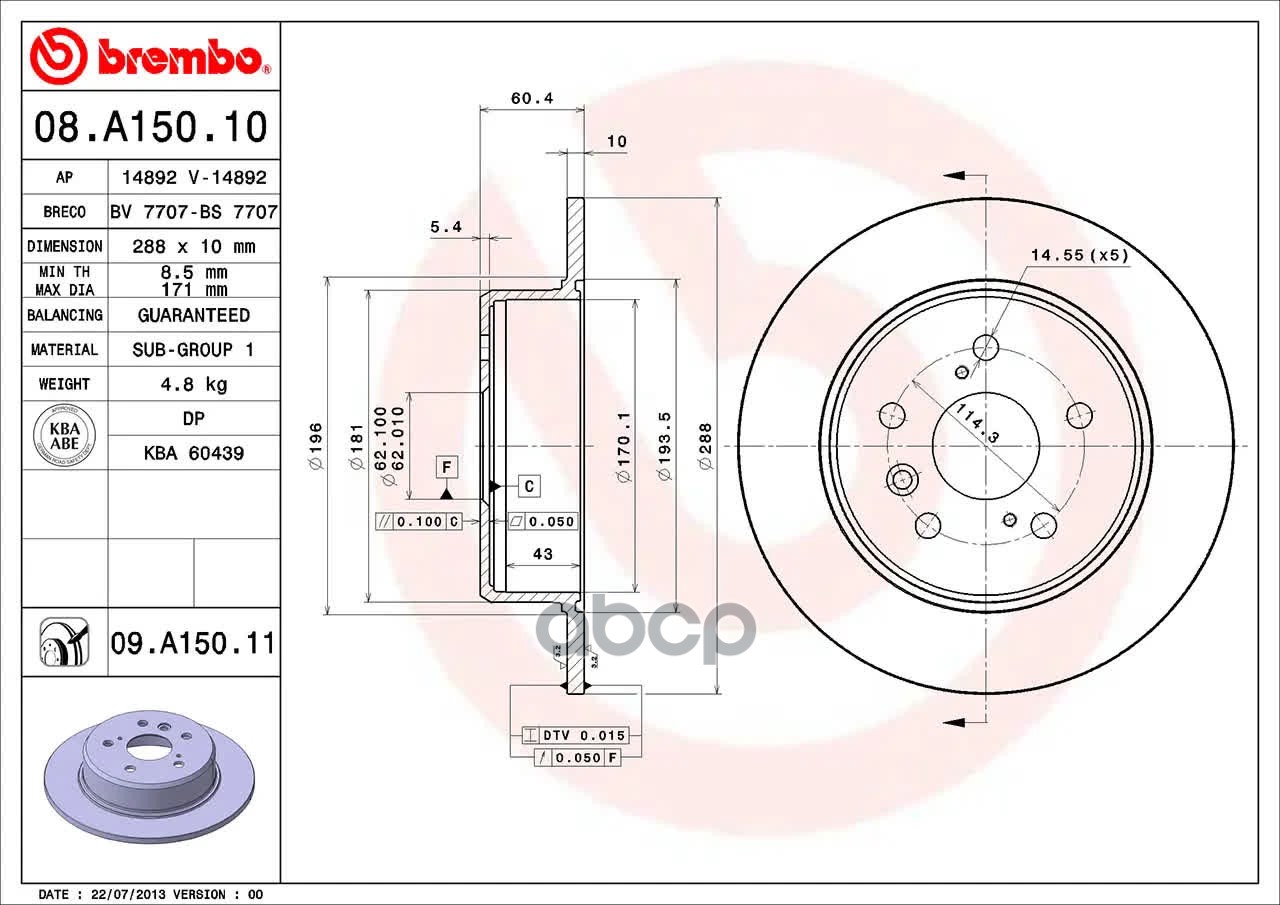 Наименование: 08.A150.11 диск тормозной задний с покрытием Lexus RX300 3.0 00-03